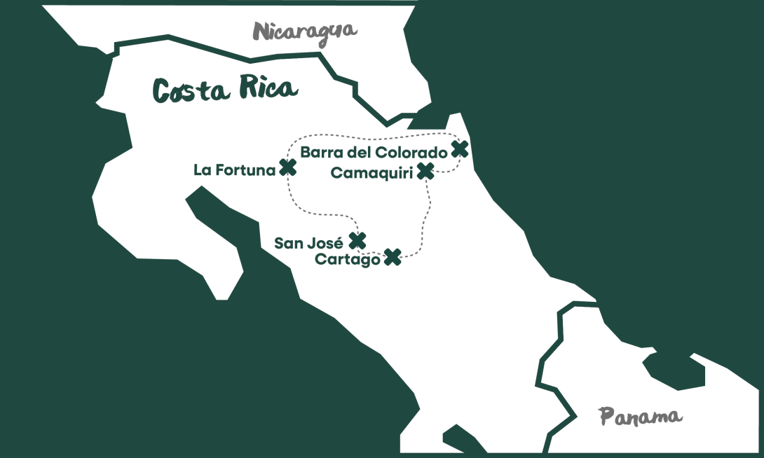 You will journey from Costa Rica’s capital to two critical conservation sites – the Camaquiri Conservation Initiative and the remote Barra del Colorado Wildlife Refuge, both based on the stunning Caribbean side of Costa Rica. Spend your days surrounded by lush jungle, learning from expert conservationists as you get stuck into field research and conservation projects.